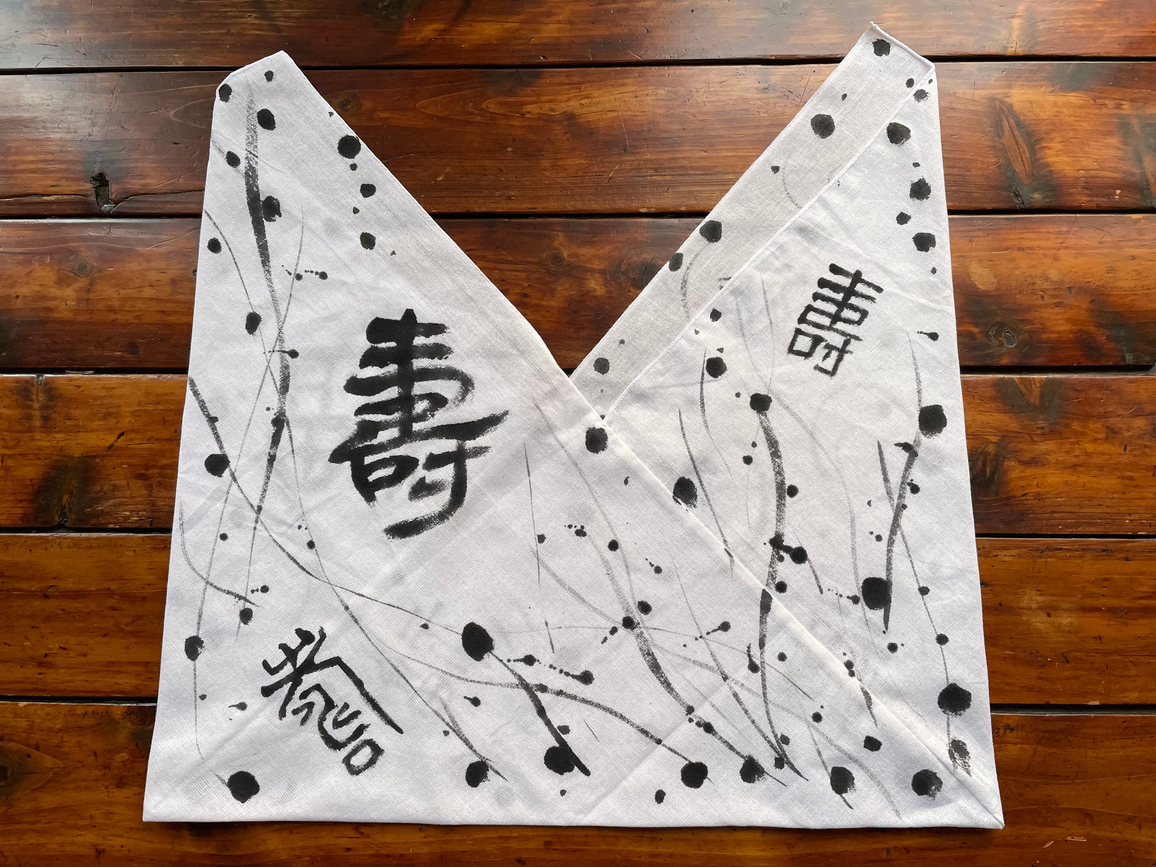 おめでたい福と寿の文字を表裏に、落ちない墨で書いています。一つ一つ手書きなので、かすれや滲みもオリジナルの風合いに♪
